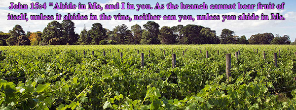 Remember Jesus making the analogy of being the Vine and we are the branches. The branches have to be a part or one with the vine itself. But if you walk through a vineyard what do you see? You see all the branches moving out from the vine. The more you step back and look upon the field, you see a mass of green, you can’t tell the branches from the vine. You recognize it as a vineyard, but the branches have all become one with one another because they all abide in the parent vine! That is abiding. Plain and simple.