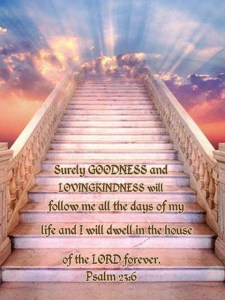 Psalm 25:10 states, “All the paths of the Lord are lovingkindness and truth—.” Since we have already established the fact that our paths are prepared and made right by the Lord, Psalm 37, and that as a Shepherd He leads and guides us, it only follows reason that goodness and lovingkindness will be an attribute “all the days of my life.” Remember that the one who follows God’s prepared paths has favor with Him already. Both these attributes usually refer to covenant benefits. The rest of Psalm 25:10 says, “To those who keep His covenant and His testimonies.” His covenant is the agreement that has been ratified by His blood for our sakes; it’s His promises to us, if, we accept Him. His testimony is the affirmation of His truth. We publicly affirm the truth of all that He says and does, but we don’t just do that by what we say but by how we apply those truths to our lifestyles. Christianity is not just a set of verbal beliefs, but a set of beliefs put into practice with the goal of changing our lives to become more like Christ. The power and authority behind what we say is only there if it is evident in our lifestyles first. Anybody can speak the words of life, but only a Spirit led life can walk the walk. Those that attain that lifestyle have goodness and lovingkindness, as well as the other fruit of the Spirit listed in Galatians 5:22-23.