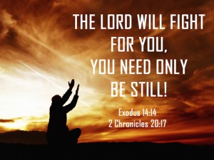 Now please keep that thought in mind as I give you this other Scripture; “Thus says the LORD to you: ‘Do not be afraid nor dismayed because of this great multitude, for the battle is not yours, but God’s.'” – 2 Chronicles 20:15b, “‘You will not need to fight in this battle. Position yourselves, stand still and see the salvation of the LORD, who is with you, . . .'” – 2 Chronicles 20:17a.