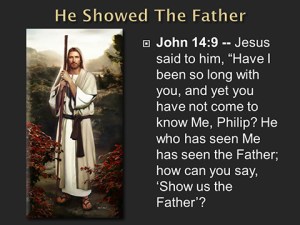 “Jesus said to him, “Have I been with you so long, and yet you have not known Me, Philip? He who has seen Me has seen the Father; so how can you say, ‘Show us the Father’? “Do you not believe that I am in the Father, and the Father in Me? The words that I speak to you I do not speak on My own authority; but the Father who dwells in Me does the works. Believe Me that I am in the Father and the Father in Me, or else believe Me for the sake of the works themselves.” – John 14:8-11.