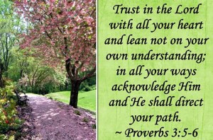 “Trust in the LORD with all your heart, And lean not on your own understanding; In all your ways acknowledge Him, And He shall direct your paths. Do not be wise in your own eyes; Fear the LORD and depart from evil. It will be health to your flesh, And strength to your bones.” – Proverbs 3:5-8.