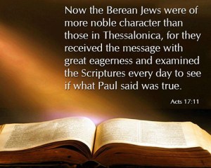“Then the brethren immediately sent Paul and Silas away by night to Berea. When they arrived, they went into the synagogue of the Jews. These were more fair-minded than those in Thessalonica, in that they received the word with all readiness, and searched the Scriptures daily to find out whether these things were so.” – Acts 17:10-11.